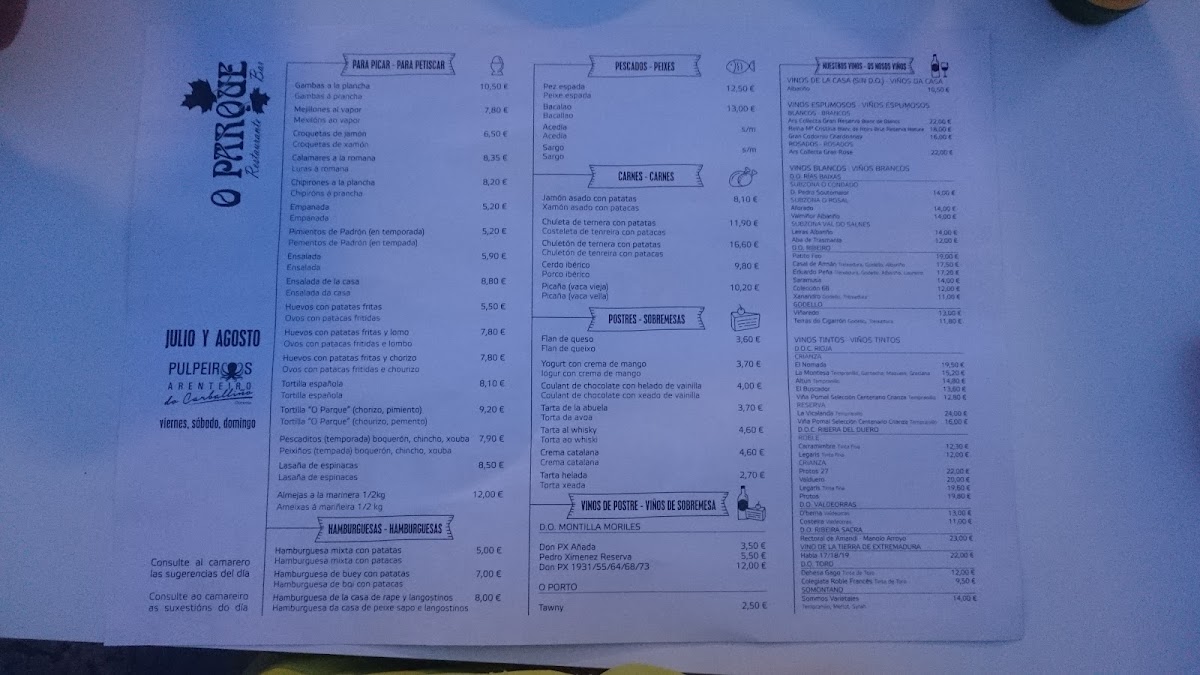 O Parque invites you to savor the essence of Galician coastal cuisine in a warm, inviting setting in Sabaris, Pontevedra. The menu celebrates fresh, local seafood with standout dishes like the Pulpo de nuestras rías, tender and perfectly seasoned octopus that captures the Atlantic’s richness. Their Calamares and Zamburiñas are cooked to crisp, golden perfection, highlighting the freshness of the region’s bounty.